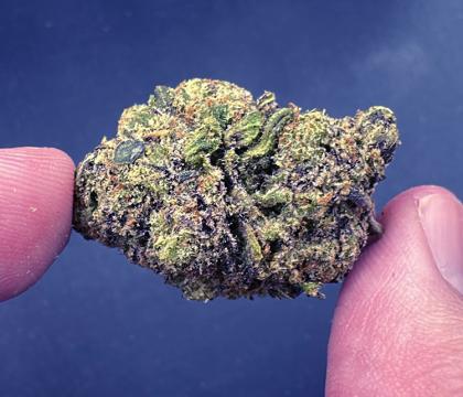 Coffin Candy is a slightly indica dominant hybrid strain (60% indica/40% sativa) created through crossing the delicious Runtz X Strawberry Zkillato strains. Don't let the name of this bud scare you off – if you die from anything with this bud, it'll be to get another taste. The flavor of Coffin Candy is super sweet and sugary, with a fruity berry candy overtone accented by sugary lemony citrus and a hint of spicy cinnamon. The aroma is almost the same, almost like you're enjoying a bag of zesty Skittles while pumping gas at your local station. The Coffin Candy high will start with a slow burn, sinking into both mind and body with what's been described as a “chill, happy and uplifted hazy bliss.” You'll feel plush and soft, almost like you've completely melted away before you're suddenly locked down into a deep state of couchlock that more often than not ends in sleep. With these long-lasting effects and its insanely high 32-33% average THC level and 0-1% average CBD level, Coffin Candy is often chosen to treat chronic stress or anxiety, PTSD, depression or mood swings, chronic pain and insomnia.