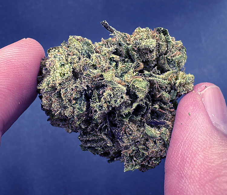 Blue Nerds is an evenly balanced hybrid strain (50% indica/50% sativa) created through crossing the classic Forbidden Fruit X Watermelon Z strains. Named for its gorgeous appearance and amazing flavor, Big Nerds is the perfect balanced hybrid to help you get creative on a lazy afternoon when you don't have much of anything else to do. Blue Nerds buds have eye-catching grape-shaped and fluffy forest green nugs with deep purple undertones, lots of super thin orange hairs and a sparkling, frosty coating of deep purple-tinted white crystal trichomes. As you break apart each glittering little nugget, you'll detect aromas of sour, citrusy lemon, sharp Granny Smith apples and fruity blueberries. The flavor is very similar, with a bouquet of fresh fruits, including sugary blueberries, sour apples and sweet, fruity melons. The Blue Nerds high is just as delicious as its taste and smell, with a happy, soothing overtone that activates the brain and settles the body in no time at all. You'll feel happy and focused with a boost in creativity that helps you get into the thick of work or carry on meaningful conversations with those around you. In combination with its super high 25-26% average THC level, these effects give Blue Nerds an edge in treating ADD or ADHD, depression, chronic stress or anxiety, chronic pain and arthritis.